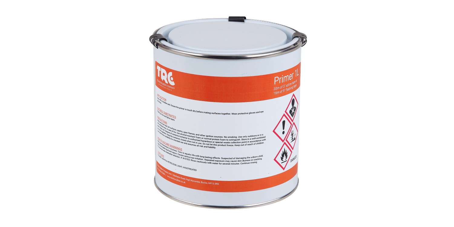 TRC Techno EPDM Rubber Roof Primer is designed to be used as an activator for all detailing products and tapes to create waterproof seals on your EPDM flat roofing project. Simply apply this primer consistently to your EPDM membrane using a paint brush or scrubbing pad, making sure the primer is evenly distributed across the application area and does not pool.