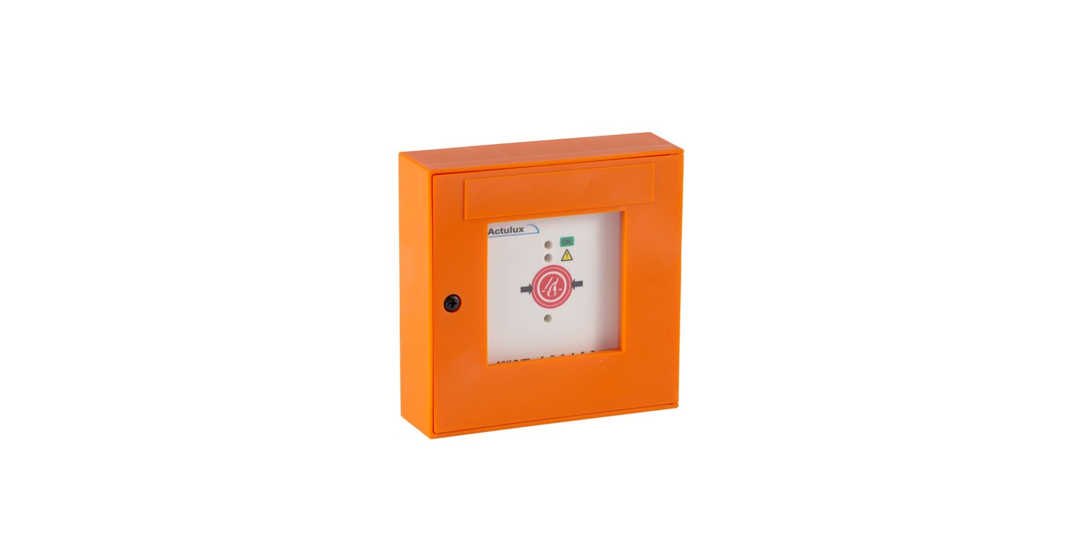 Manual emergency button to activate a fire alarm system.